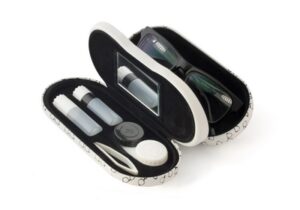 Houd alles georganiseerd met deze lenzen-/brillenkoker van Balvi met print van brillen! Naast dat je de brillenkoker kunt gebruiken voor je bril, is deze ook praktisch voor een lenzendoosje, twee flacons voor vloeistof en een pincet. In de brillenkoker zit een spiegeltje gemonteerd, zodat je zonder moeite je lenzen in en uit kunt doen. De koker is gemaakt van metaal, wat zorgt voor extra bescherming en duurzaamheid.