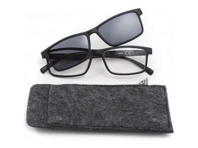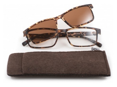 Deze modieuze leesbril is voorzien van een zonneclip die met magneetjes op de leesbril bevestigt wordt. De leesbril kan dus als gewone leesbril gebruikt worden maar ook als zonneleesbril.