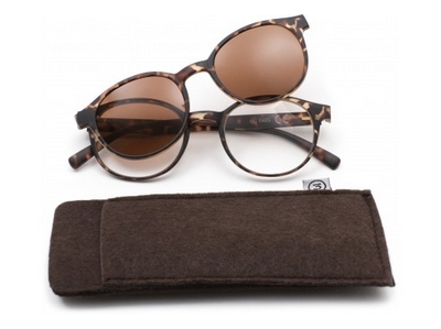 Deze modieuze leesbril is voorzien van een zonneclip die met magneetjes op de leesbril bevestigt wordt. De leesbril kan dus als gewone leesbril gebruikt worden maar ook als zonneleesbril.