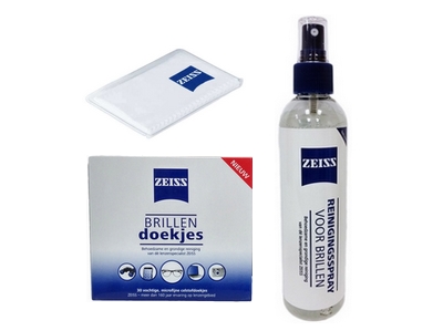 Compleet pakket van Zeiss voor het reinigen van uw brillenglazen. Het pakket bestaat uit de reinigingsspray, microvezeldoek en handige reinigingsdoekjes.
