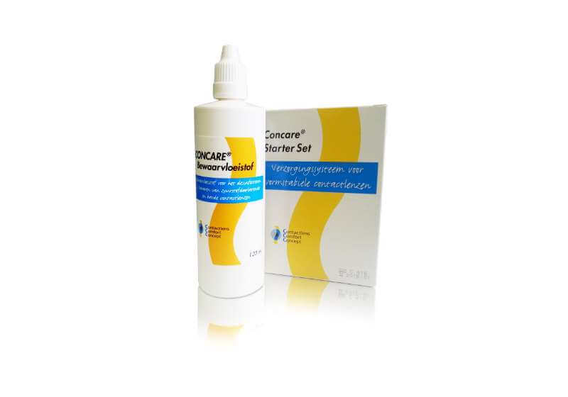 Concare met het blauwe etiket is een vloeistof voor het desinfecteren en bewaren van harde en zuurstofdoorlaatbare lenzen. U kunt deze in combinatie gebruiken met de concare reinigingsvloeistof (rood etiket) voor optimale verzorging van uw lenzen.