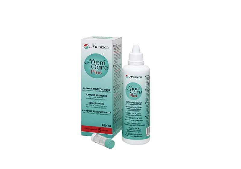 Menicare plus is het alles-in-1 reiningssysteem voor harde lenzen. Hiermee kunt u de harde/vormvaste lenzen dus reinigen, spoelen, desinfecteren en bewaren. Met name geschikt in combinatie met de Rose K lenzenfamilie van Menicon.