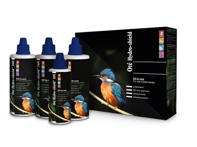 De alles-in-één vloeistof Ote hydroshield is speciaal ontwikkeld voor optimale reiniging en comfort van alle zachte contactlenzen.